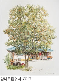 다양한 색채의 아크릴 잉크를 사용하여 주로 정물화, 풍경화를 수채화나 아크릴화의 느낌이 아닌 정교한 펜화로 탄생시키는 작가는 20년 전 둘째를 임신했을 즈음에 경기지역의 퇴촌으로 이사를 하게 되었는데, 그곳에서 접한 일상 풍경을 그냥 스치지 않고 예민한 눈길로 구석구석을 관찰한 것이 오늘날의 작품으로 연결되었다. 일상의 소소함을 놓치지 않고 포착하였으며 매일 산책길에 보았던 구멍가게의 풍경에 매료된 때부터 20여 년간 전국 곳곳의 사라져가는 구멍가게들을 하나씩 펜화 기법으로 그려내어 다큐멘터리처럼 기록해오고 있다. 이번에 출품된 작품들도 이러한 맥락에서 제작된 작품들로서, 한 장소를 사계절 동안 관찰하여 기록한 연작 작품과 다양한 지역에서 우리 일상의 추억을 담고 있는, 그러나 개발과 변화의 흐름을 견디지 못하고 점점 희미해져 가는 소소한 풍경을 치밀한 필치로 그려낸 작품들로 구성되어 있다. 이번 전시는 작가의 치밀한 테크닉과 친숙한 소재가 결합하여 전문가들은 물론 대중적인 호평도 받았는데 이러한 분위기는 전시 개막일 현장의 분위기에서도 잘 느낄 수 있었다. 보통의 개막식과 달리 작가의 팬클럽 모임 같은 분위기가 미술과 대중의 자발적이고 진정성있는 접점을 이룬 것 역시 이미경 작가의 노력을 칭찬해주어야 하는 이유 가운데 하나일 것이다.