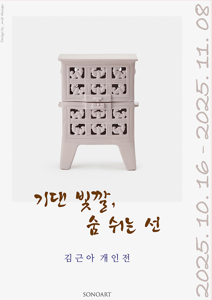 백자에 전통 목가구의 문양, 그리고 한국 전통 문양을 더해 작품을 제작하는 작가 김근아의 개인전 《기댄 빛깔, 숨 쉬는 선》으로 소노아트sonoart 10월 기획전을 시작합니다. 작가의 이전 《여백은 깊다(소노아트, 2023)》 개인전 이후 2025년 전시에서는 정교한 투각에 더해 색감을 달리한 작품들이 선보일 예정입니다.