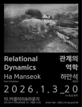 하만석 개인전《관계의 역학(Relational Dynamics)》전 시 명 《관계의 역학(Relational Dynamics)》참여작가 하만석전시기간 2026.1.3.(토) ~ 1.20.(화) *수·목·금 휴무관람시간 11:00 - 18:00 (13:00 - 14:00 브레이크타임)전시장소 10.19갤러리&라운지(인천 연수구 아트센터대로 107, 가...