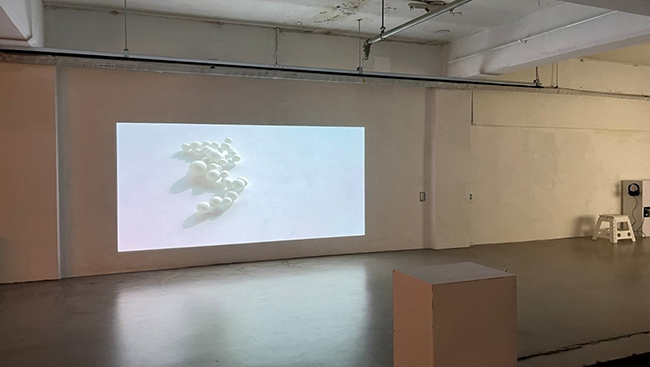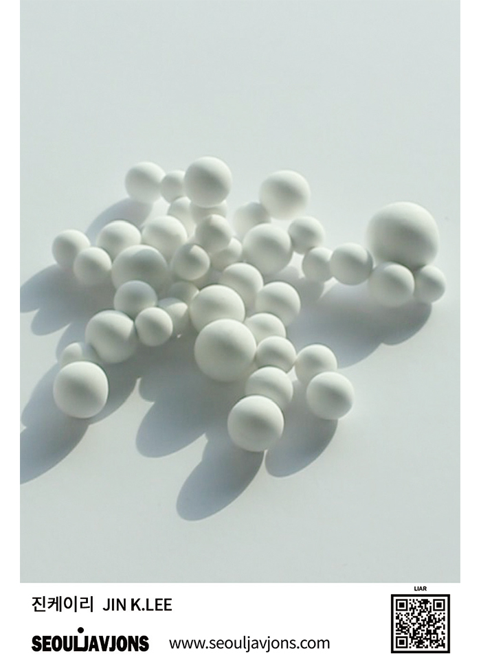 영상에는 손으로 빚은 엇비슷한 크기의 하얀 구슬들이 등장한다. 내부에는 작은 자석이 하나씩 삽입되어 있어 일정한 거리를 두고 있으면 하얀 구슬들은 혼자 존재할 수 있지만 외부요인에 의해 조금이라도 변화가 생기면 자성에 의해 서로를 끌어당겨 예상치 못한 다양한 ‘집단의’ 형태들을 만들어 낸다. 더 많은 수의 구슬들이 모이면 끌어당기는 힘이 더욱더 커져 혼자이거나 적은 수의 구슬들을 쉽게 자신의 형태 ‘집단으로’ 포함시키는 자기력을 활용하여 일종의 압축된 서사를 만들어 나간다.
