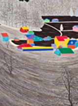스케치 작업을 거친 후 재구성되어 등장하는 작가의 풍경화들은 실경(實景)이라기보다는 진경(珍景)에 가까운데, 김윤희 작가는 마치 장난감처럼 아기자기하게 그려진 사람들의 거주 공간이나 자연 풍경의 모습을 통해 우리가 익숙한 풍경 속에서 문득 느끼게 되는 낯설고 흥미로운 찰나의 순간을 그림 속에 담아내고자 한다. 작가는 익숙한 주제와 풍경을 장지와 먹, 그리고 아크릴을 활용한 작업 방식을 통해 그림을 보는 이로 하여금 순간적으로 변모하는 자연의 움직임, 즉 자연의 ‘율동’을 감지하도록 만든다.