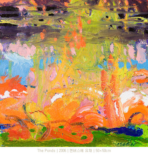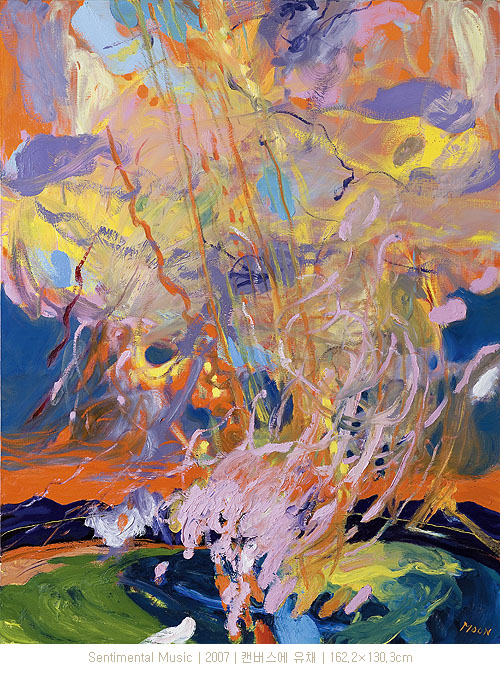 작가의 빠르게 확대되고 두텁게 칠한 회화적 몸짓에서 유래하는, 역동적이고 리드미컬한 효과를 주는 색면은 관람자들에게 가장 친근하면서 환상적이기까지 한 현실을 회고하는 무드에 빠지게 만든다.
