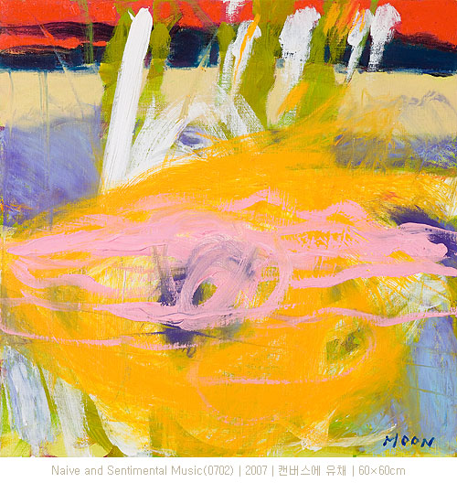 작가는 자신의 화면을 즉흥적 재즈처럼 구성한다. 색채, 자유로운 동작, 조화로운 구성이 화면 위에 리드미컬하게 흐르고 이러한 음악적 감성이 문혜자의 붓터치를 리드한다.
